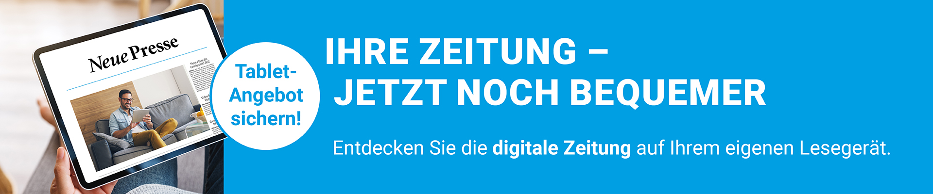 Füllen Sie das folgende Formular mit den bereits bei uns hinterlegten Kundendaten aus, um das Tabletangebot in Anspruch zu nehmen. Wenn Sie noch nicht für die kostenlose digitale Zeitung freigeschaltet sind, wird die Freischaltung automatisch im Bestellprozess durchgeführt.